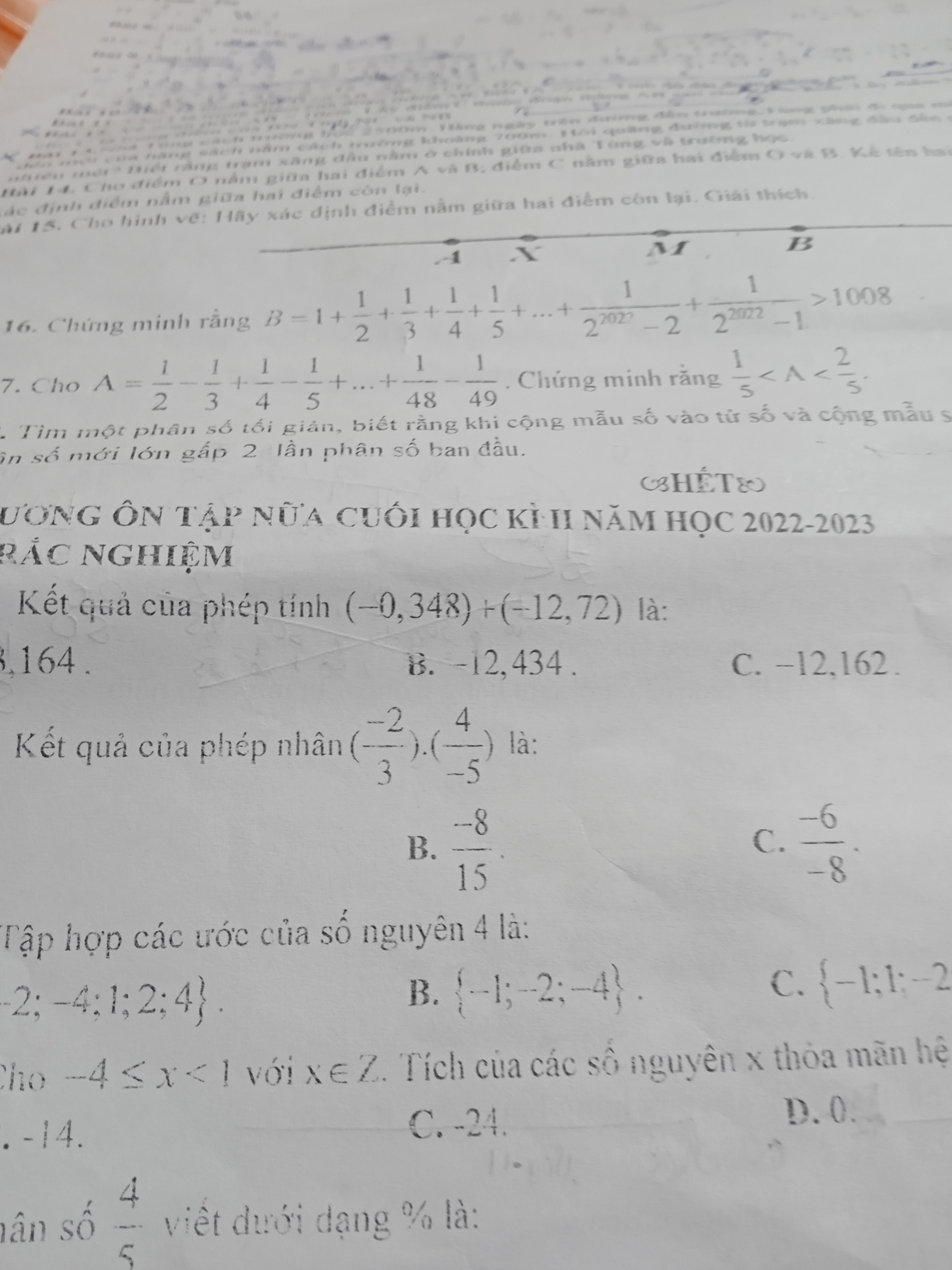 Chứng minh rằng B = 1+ 1/2 + 1/3 + 1/4 + 1/5 +...+1/(2²⁰²² - 2) +1/(2²⁰²² - 1) > 1008