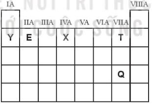 Cho vị trí của các nguyên tố E, T, Q, X, Y trong bảng tuần hoàn rút gọn (chỉ biểu diễn các nguyên tố nhóm A) như sau: