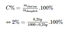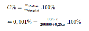 Áp dụng công thức tính nồng độ phần trăm: