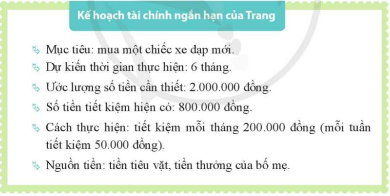 Câu 2 trang 35 HĐTN lớp 10: Xác định các loại kế hoạch tài chính cá nhân.