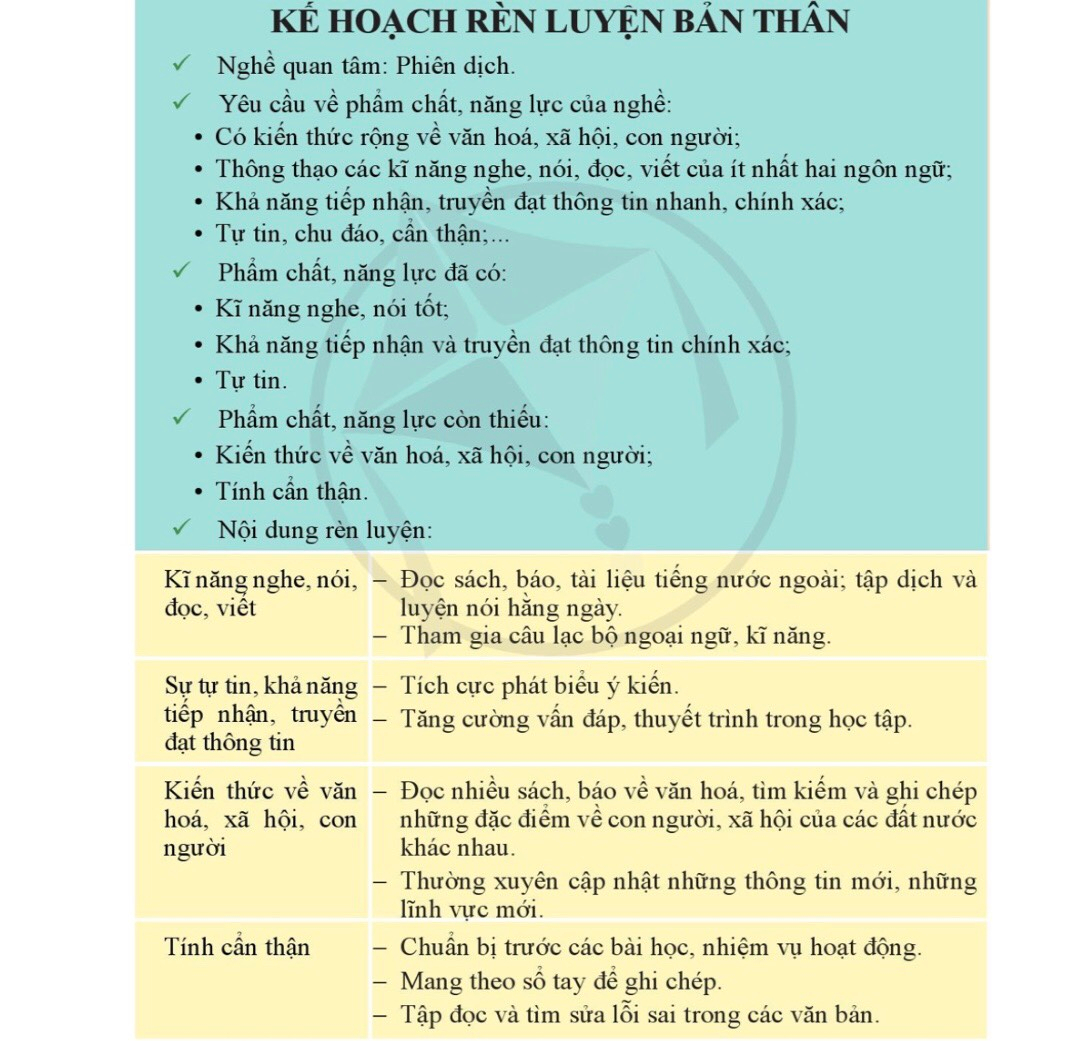 Câu hỏi 2 trang 76 HĐTN 10: Chia sẻ kế hoạch rèn luyện của em.