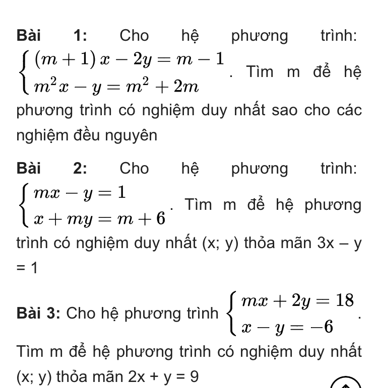 Câu 1: Tìm m để hệ phương trình có nghiệm duy nhất và các nghiệm đều nguyên