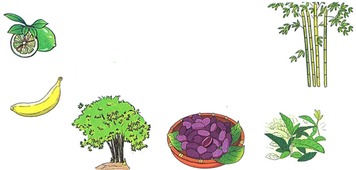 - Có tiếng bắt đầu bằng tr: cây tre, quả trám, quả trứng gà (lekima)...