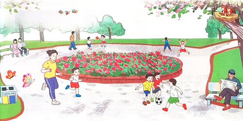 - Chỉ sự vật: người lớn, bạn nam, bạn nữ, chị gái, ông lão, chú chim, đàn bướm, vườn hoa, bông hoa, hồ nước, bãi cỏ, cây hoa, thùng rác, quả bóng, tờ báo, ghế đá…