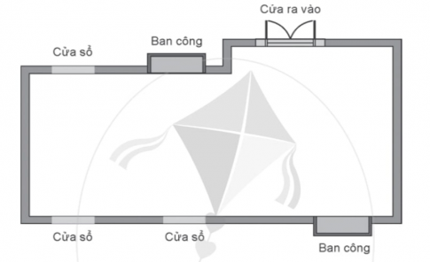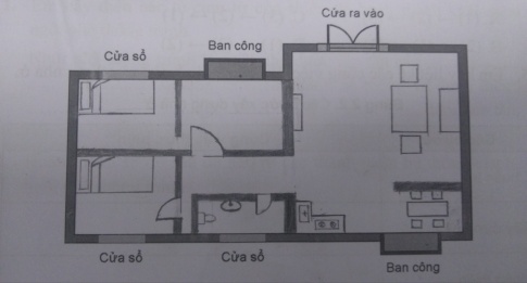 Câu 8. Giả sử em có một diện tích (như dưới đây). Hãy thiết kế, bố trí các phòng (khu vực) độc lập hoặc kết hợp để thuận lợi cho việc sinh hoạt, học tập và nghỉ ngơi.