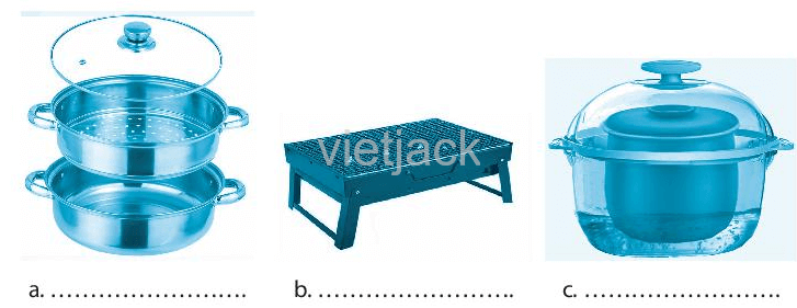 Câu 22 trang 29 sách bài tập Công nghệ 6: Cho biết các dụng cụ dưới đây được dùng để chế biến thực phẩm theo phương pháp nào