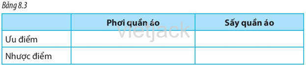 So sánh ưu, nhược điểm của hai phương pháp : phơi và sấy quần áo trong Bảng 8.3