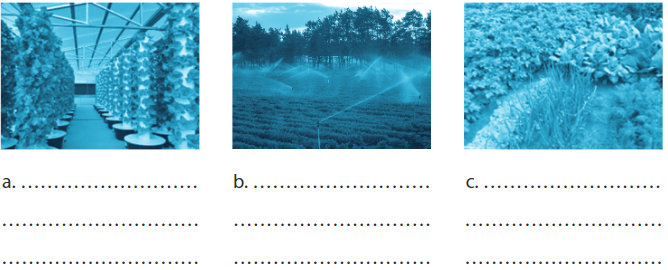Câu 9 trang 12 SBT Công nghệ 7: Hãy quan sát các hình ảnh và nêu điểm nhận biết trồng trọt công nghệ cao (nếu có) được thể hiện trong mỗi hình vào chỗ trống dưới đây.