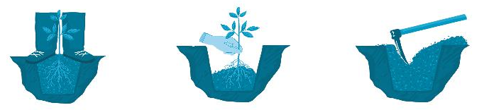 Lấp và nén đất chặt xung quanh gốc cây |