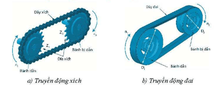 Trục dẫn quay – Bánh dẫn quay – Bánh bị dẫn quay – Trục bị dẫn quay.