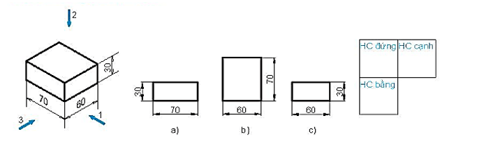 + Hình chiếu cạnh nằm bên phải hình chiếu đứng.