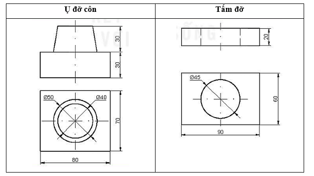 Câu 7 trang 8 SBT Công nghệ 8: Vẽ hình chiếu đứng, hình chiếu bằng và ghi kích thước của các vật thể ở Hình 2.11.