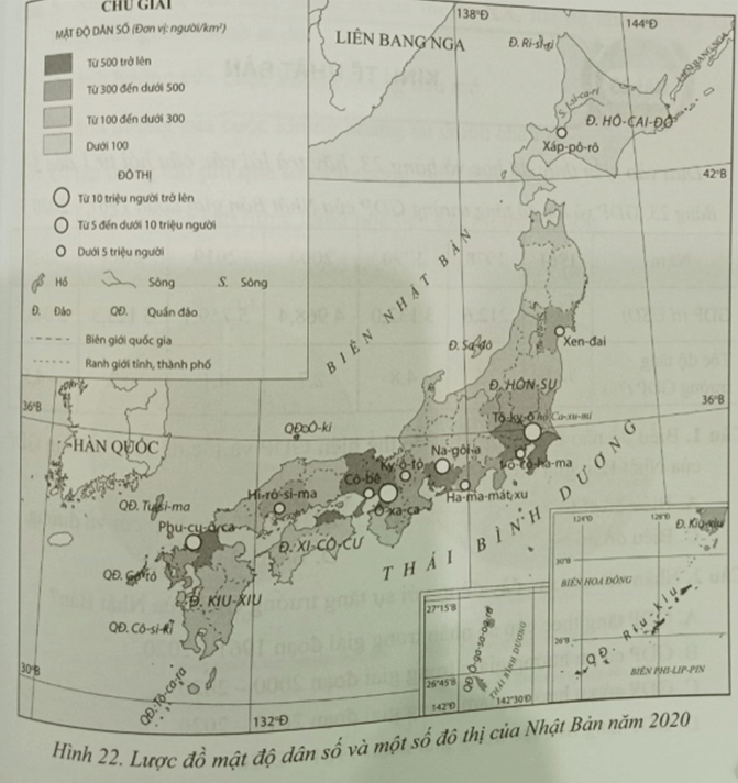 b) Nhận xét về sự phân bố dân cư và các đô thị của Nhật Bản.