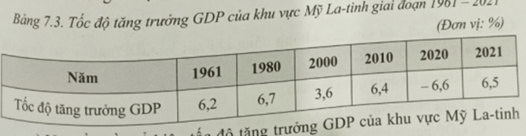 - Nhận xét: Tốc độ tăng trưởng GDP của khu vực Mỹ La-tinh nhìn chung còn chậm và có sự biến động trong giai đoạn 1961 - 2021 (dẫn chứng).