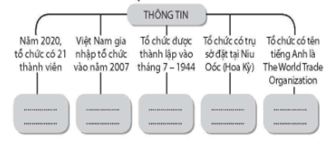 Câu 2 trang 16 SBT Địa lí 11: Điền tên các tổ chức khu vực, tổ chức quốc tế vào chỗ trống (…) để hoàn thành sơ đồ dưới đây.