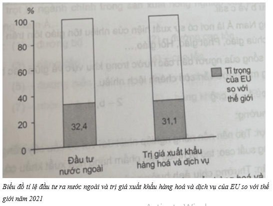 - Nhận xét: EU chiếm tỉ trọng cao về đầu tư ra nước ngoài và trị giá xuất khẩu hàng hoá và dịch vụ trên thế giới.