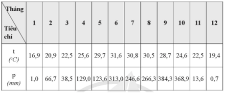 Bảng 2. Nhiệt độ không khí trung bình (t) và lượng mưa (p) các tháng tại trạm khí tượng Láng (Hà Nội) năm 2021