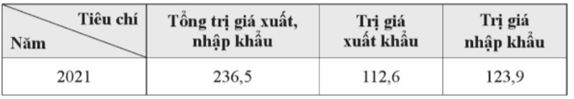 - Tỉ trọng trị giá xuất khẩu năm 2021 là: (112,6 x 236,5) : 100 = 47,6 %.