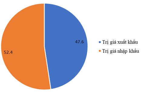 - Tỉ trọng trị giá nhập khẩu năm 2021 là: 100 - 47,6 = 52,4 %.