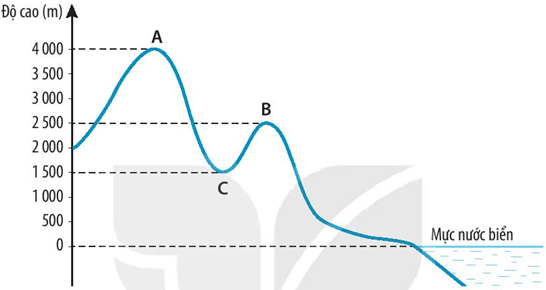 - Độ cao tương đối của điểm A so với điểm C là: 2 500 m.