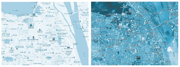 Dựa vào khái niệm bản đồ để phân biệt: hình bên trái là bản đồ vì
