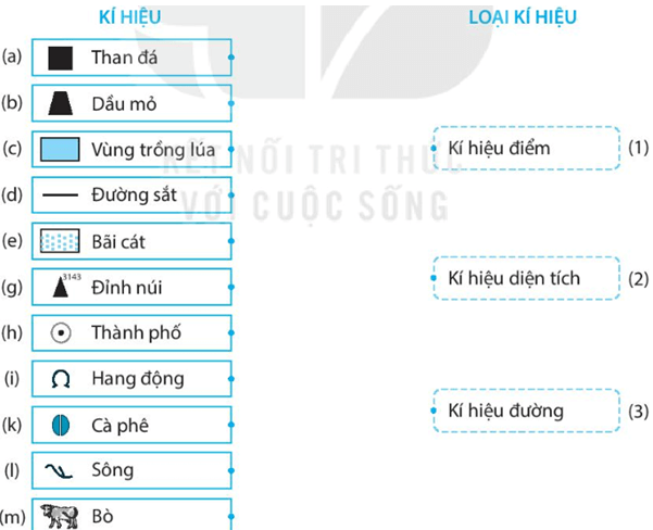 - Kí hiệu điểm: than đá, dầu mỏ, đỉnh núi, thành phố, hang động, cà phê, bò.