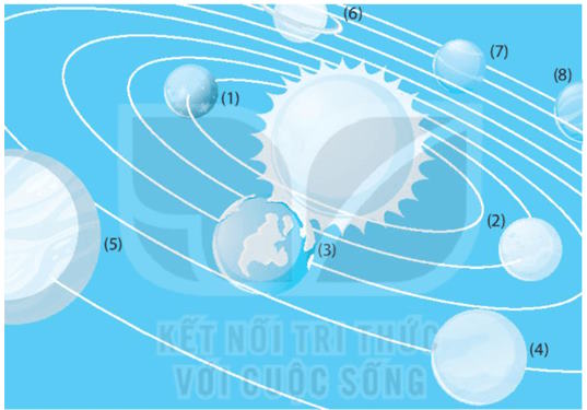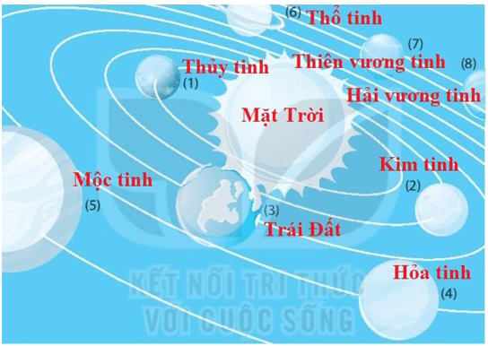 (1) Thủy tinh; (2) Kim tinh; (3) Trái Đất; (4) Hỏa tinh; (5) Mộc tinh; (6) Thổ tinh; (7) Thiên vương tinh; (8) Hải Vương tinh.