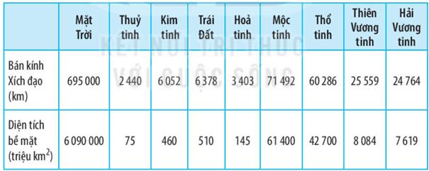 Hãy nhận xét về kích thước của Trái Đất so với các hành tinh khác trong hệ Mặt Trời.