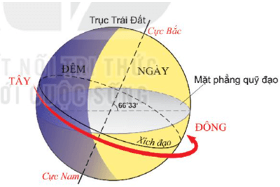 Do Trái Đất có (1) dạng khối cầu nên lúc nào cũng chỉ được Mặt Trời (2) chiếu sáng một nửa Do sự chuyển động tự quay từ (3) tây sang đông nên ở khắp mọi nơi trên Trái Đất đều lần lượt có (4) ngày và đêm luân phiên nhau.