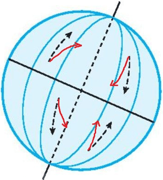 Tại sao gió Mậu dịch (Tín phong) ở bán cầu Bắc thổi từ vùng áp cao cận chí tuyến về áp thấp xích đạo không theo hướng bắc - nam mà lại theo hướng đông bắc?
