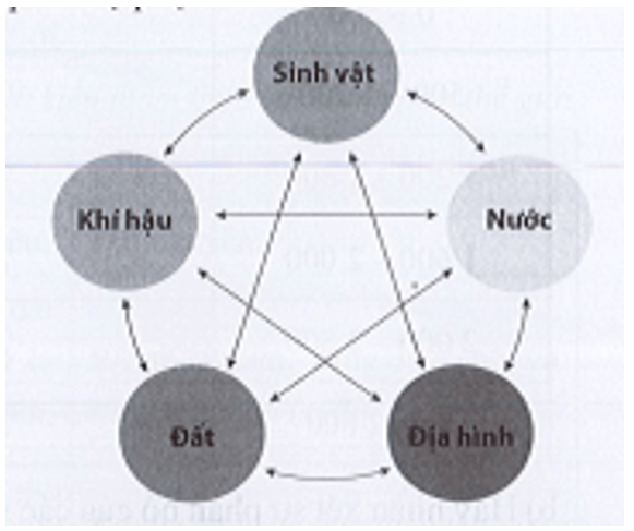 Câu 5 trang 28 SBT Địa Lí 10: Quan sát hình 14.1, hãy lựa chọn một thành phần tự nhiên để phân tích ảnh hưởng và sự tác động lẫn nhau, phụ thuộc vào nhau với các thành phần tự nhiên khác.