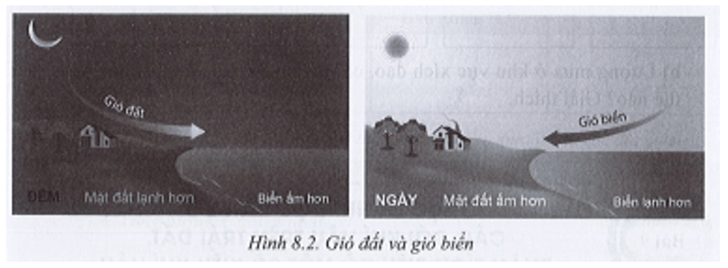 Yêu cầu a) Gió đất và gió biển được hình thành do sự hấp thụ nhiệt và toả nhiệt khác nhau giữa mặt đất và mặt nước.