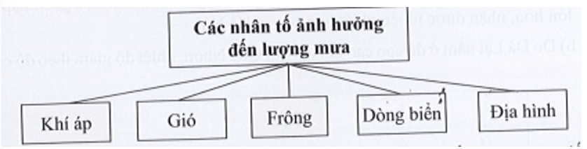 a) Hoàn thành sơ đồ theo mẫu sau để thấy được các nhân tố ảnh hưởng đến sự phân bố lượng mưa trên Trái Đất.