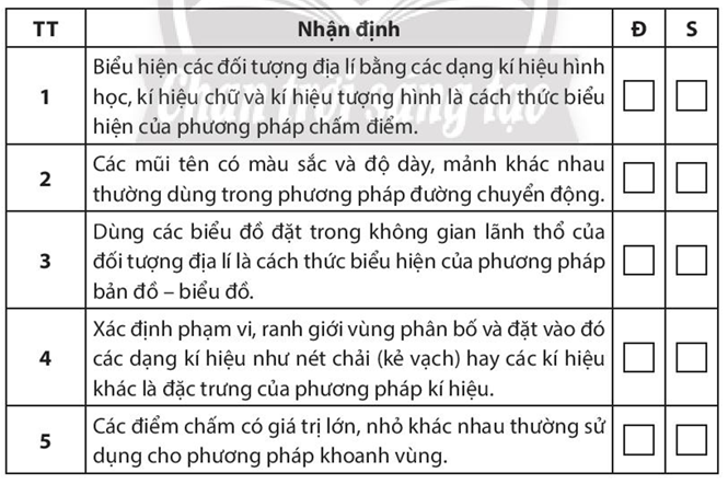 Bài tập 3 trang 7 SBT Địa lí 10: Những ý sau đây đúng (Đ) hay sai (S)? Đánh dấu (X) vào các ô tương ứng bên cạnh mỗi ý.
