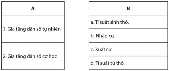 Bài tập 4 trang 66 SBT Địa lí 10: Em hãy nối các ý ở cột A phù hợp với các ý ở cột B.
