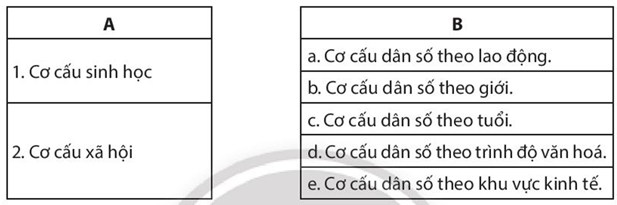 Câu 1: Cơ cấu dân số được chia thành hai loại chính là