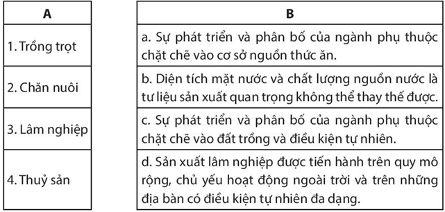 Bài tập 2 trang 90 SBT Địa lí 10: Em hãy nối các ý ở cột A phù hợp với các ý ở cột B.