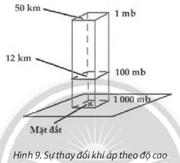 Bài tập 2 trang 30 SBT Địa lí 10: Dựa vào hình 9, em hãy mô tả sự thay đổi khí áp theo độ cao. Giải thích tại sao.