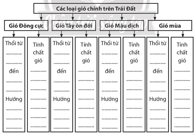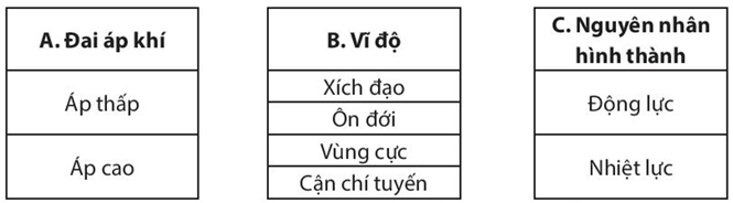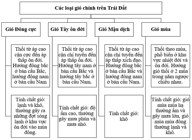 Bài tập 5 trang 31 SBT Địa lí 10: Dựa vào nội dung mục II, bài 9 trong SGK, em hãy hoàn thành sơ đồ sau: