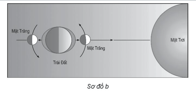 - Xác định sơ đồ nào thể hiện ngày triều cường, sơ đồ nào thể hiện ngày triều kém.