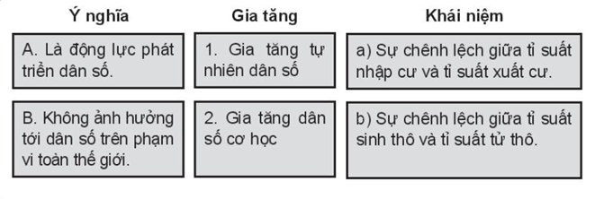 Bài tập 9 trang 50 SBT Địa lí 10: Ghép ô ở giữa với ô bên trái và ô bên phải sao cho phù hợp.