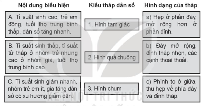 Ghép: 1 - b) -A 2 - c) - C 3 - a) - B