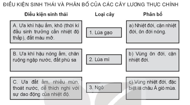 Bài tập 3 trang 61 SBT Địa lí 10: Ghép ô bên trái với ô bên phải sao cho phù hợp.