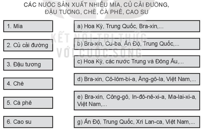 Bài tập 3 trang 63 SBT Địa lí 10: Ghép ô bên trái với ô bên phải sao cho phù hợp.