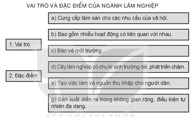Với nội dung bài Giải sách bài tập Địa lí 10 bài 25: Địa lí ngành lâm nghiệp và ngành thủy sản sách Kết nối tri thức chi tiết giúp học sinh dễ dàng xem và so sánh lời giải từ đó biết cách làm bài tập trong SBT Địa lí 10.