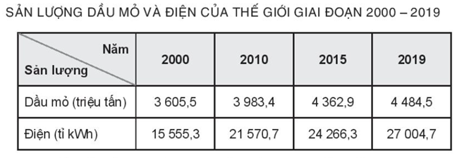 - Nhận xét: Sản lượng dầu mỏ và điện của thế giới ngày càng tăng do nhu cầu về dầu mỏ và điện ngày càng lớn.