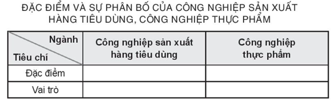 Bài tập 3 trang 75 SBT Địa lí 10: Kể tên một số sản phẩm xuất khẩu quan trọng của công nghiệp sản xuất hàng tiêu dùng và công nghiệp thực phẩm ở Việt Nam.