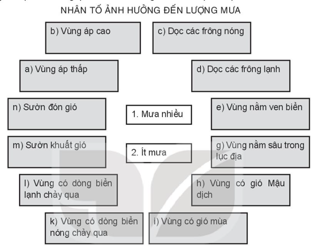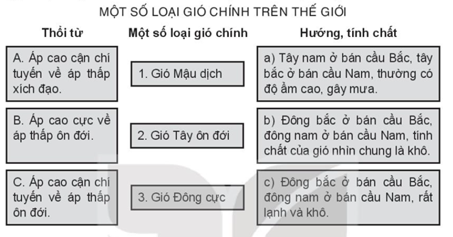 Bài tập 8 trang 27 SBT Địa lí 10: Ghép ô ở giữa với ô bên trái và ô bên phải sao cho phù hợp.