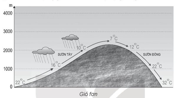 Bài tập 14 trang 29 SBT Địa lí 10: Dựa vào hình sau, hãy giải thích cơ chế hoạt động của gió fơn.