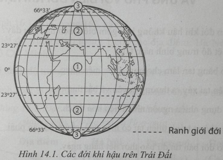 a) Hãy kể tên các đới khí hậu được đánh số (1), (2), (3) tương ứng trên hình.